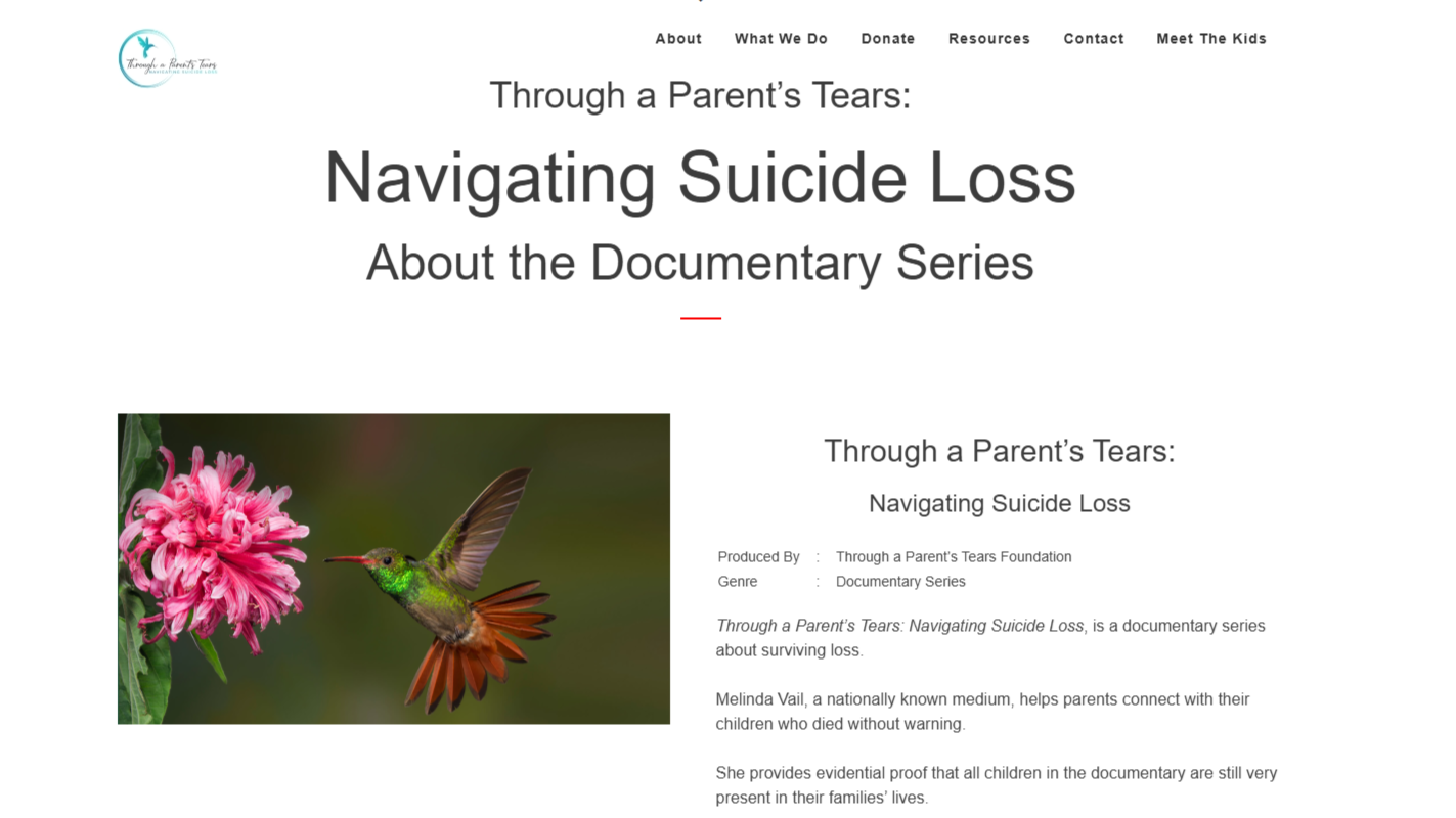 A short interview docuseries shot over the course of six years. Delve into the lives of four families who share their new reality in the aftermath of their children’s’ suicides. They discuss the events leading up to their tragedy including mental health, systemic issues, how they’ve coped and what life looks like for them now years later after the tragedy. All with the help of Melinda Vail a life coach & medium.